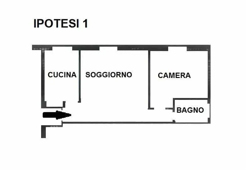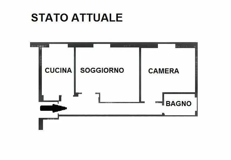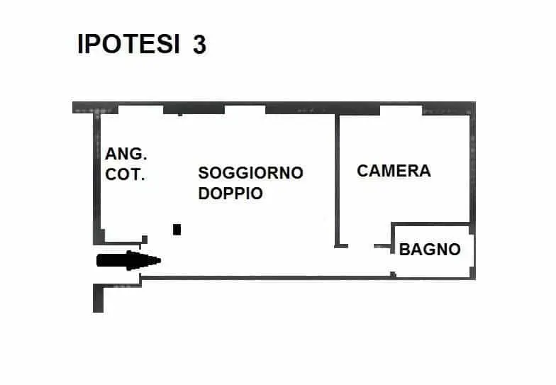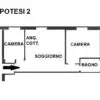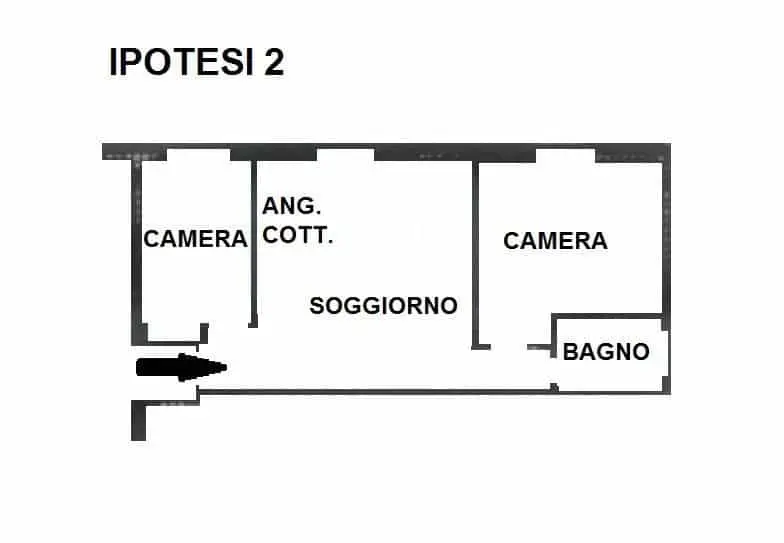 La divisione degli ambienti è razionale e con poche modifiche permette di ampliare notevolmente la zona giorno, o in alternativa di creare una seconda camera da letto, come evidenziato nelle planimetrie allegate.